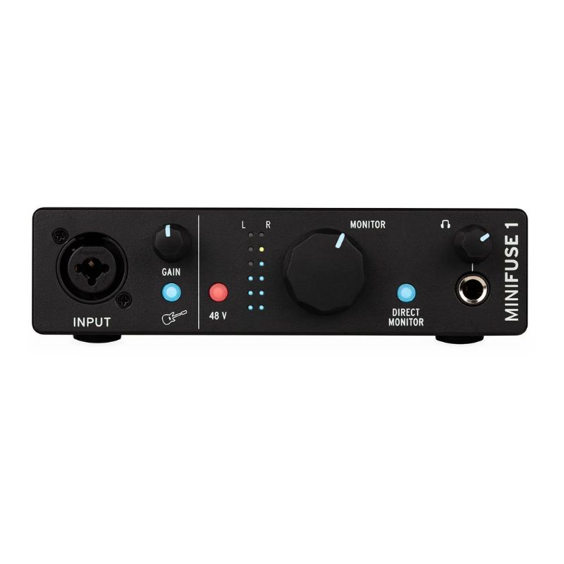 - High-Quality Preamps and Converters: The MiniFuse 1 is equipped with a high-end mic/instrument preamp that offers a respectable 56 dB of gain. It also boasts a class-leading dynamic range of 110 dB and a very low equivalent input noise (EIN) of -129 dB. This means you get exceptionally clean and transparent audio, allowing you to capture the full detail of your microphone or instrument. It can record at up to 24-bit/192 kHz resolution.