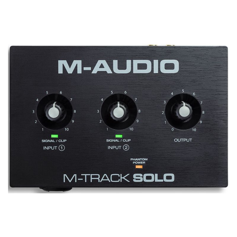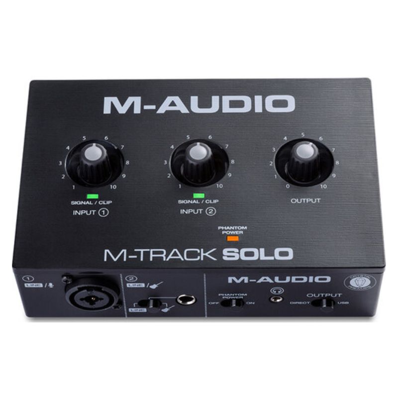M-Audio M-Track Solo Audio Interface desktop 2×2 USB audio interface provides simultaneous 2-channel recording, easy operability, and a helpful software bundle of DAWs, virtual instruments, and plug-ins.