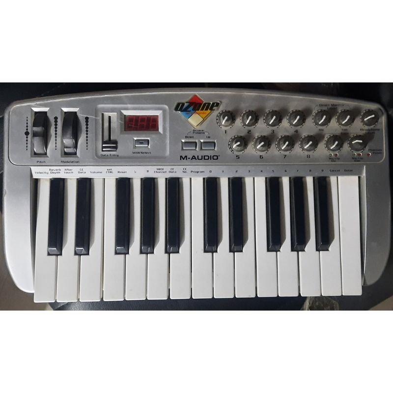 The M-Audio Ozone is a compact and portable 25-key USB MIDI keyboard controller with a built-in audio interface. Released in the early 2000s, it was designed to be an all-in-one solution for musicians, producers, and DJs on the go, providing both MIDI control for software instruments and an audio interface for recording vocals or instruments.