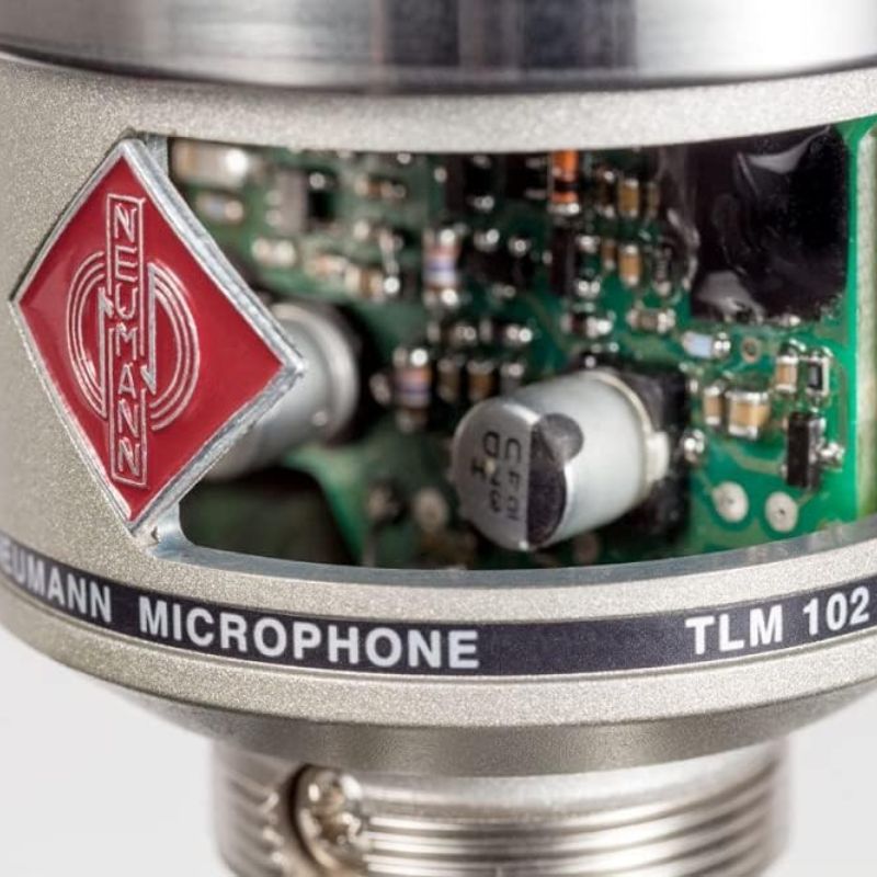 - Compact Design (“The Baby Neumann”): One of the most striking features of the TLM 102 is its exceptionally compact size. It’s significantly smaller than other large-diaphragm condensers, making it very easy to position in tight spaces, on crowded drum kits, or where visual obstruction needs to be minimized (e.g., in broadcast or video work). Despite its size, it maintains a solid, high-quality build.