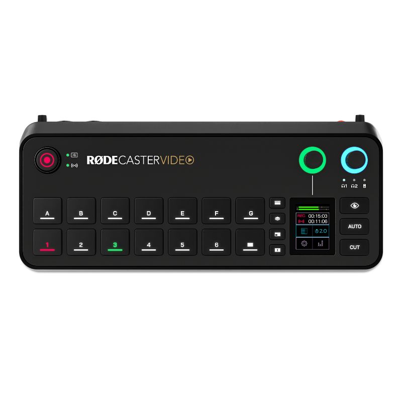 The RODE RØDECaster Video is a revolutionary all-in-one production console designed for content creators, live streamers, and video podcasters. It seamlessly integrates a multi-channel video switcher, a professional audio interface, and a customizable control surface into a single, compact device.