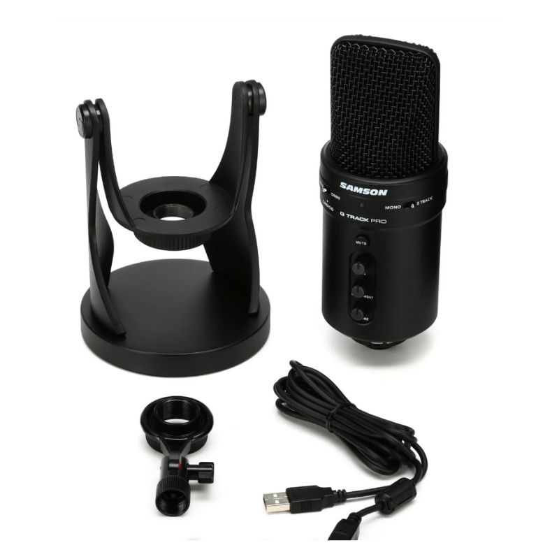 The Samson G-Track Pro is a versatile, all-in-one USB microphone designed for musicians, podcasters, streamers, and content creators. It stands out from a typical USB microphone because it also functions as a simple audio interface, allowing you to record both a microphone and an instrument simultaneously.