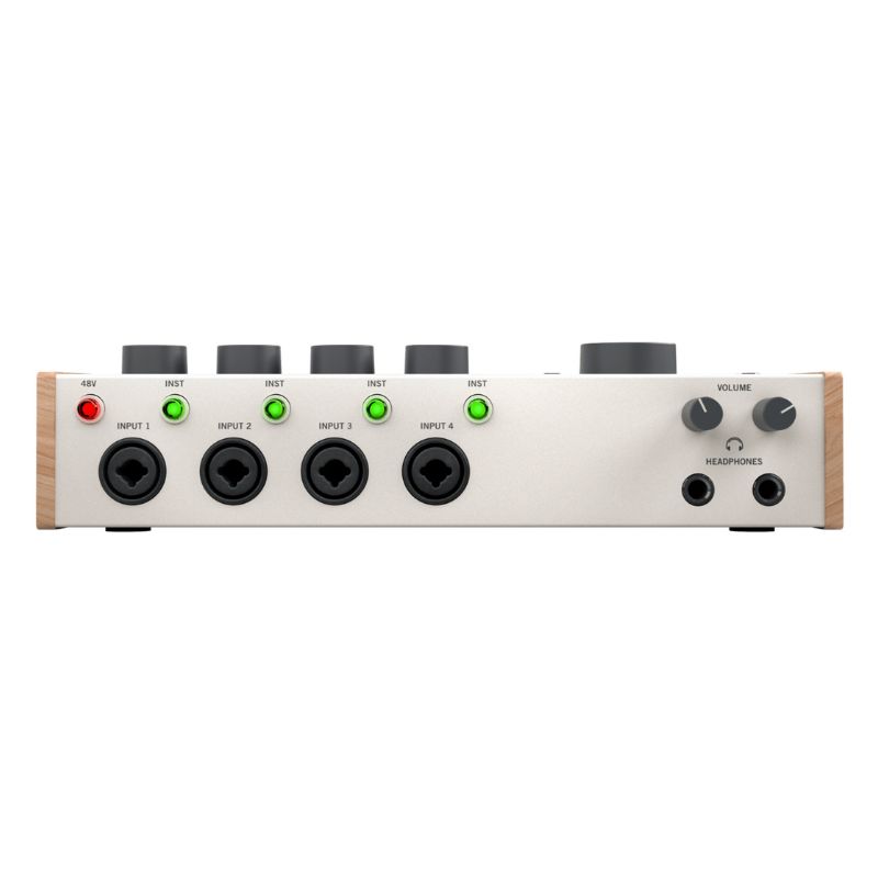 Volt 476P gives you simple 4-in / 4-out audio connections. Just plug mics, guitars, or synths into the four XLR-1/4″ combo jacks on the front panel—48V phantom power is available for condenser microphones.