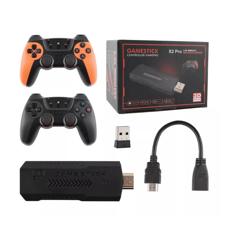 The X2 Pro 64 GB Game Stick is a plug‑and‑play retro gaming console. It’s essentially a stick (HDMI) that you plug into your TV/monitor, comes preloaded with thousands of games from classic consoles/emulators, and includes wireless controllers. It’s aimed at nostalgia gamers, families, or casual gamers who want many games without buying each one individually.