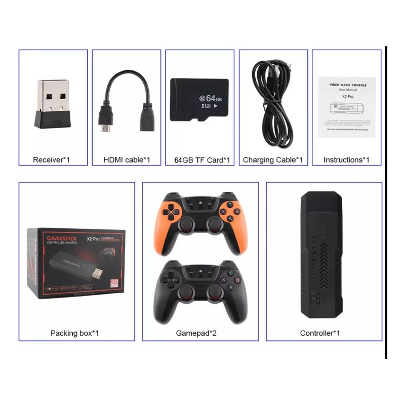 The “X2 Pro stick game 64GB” is a popular version of the retro gaming console stick that comes with a 64GB micro SD card. This memory card is pre-loaded with a vast library of classic video games, which is the primary feature that differentiates it from other variants that may come with a different storage capacity.