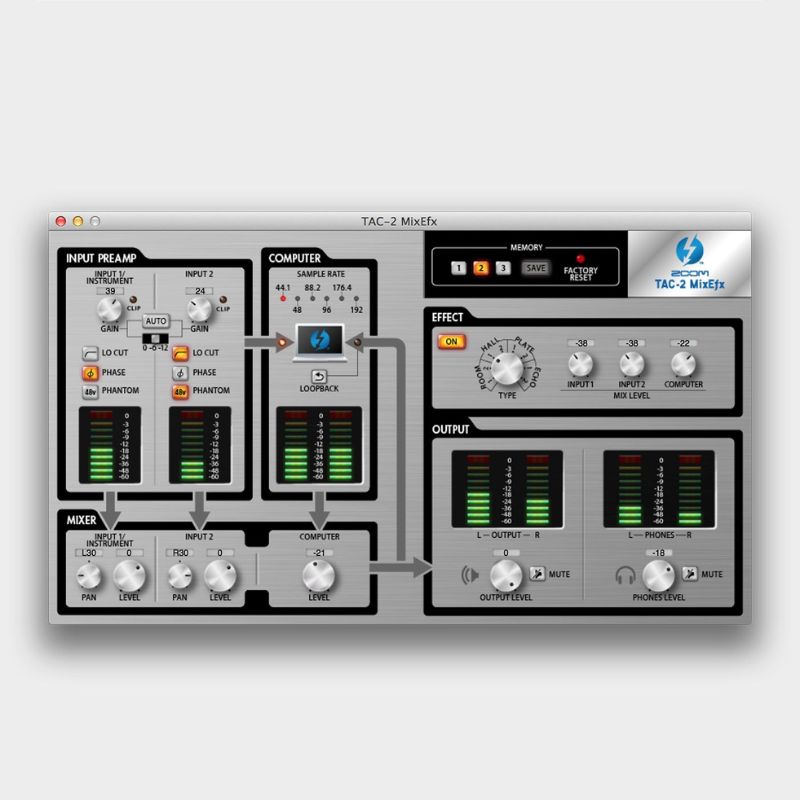 - MixEfx Software: The TAC-2 comes with a software application called MixEfx that allows you to set mix parameters and add high-quality effects like reverb and echo during monitoring, which can be useful for a more comfortable recording experience.